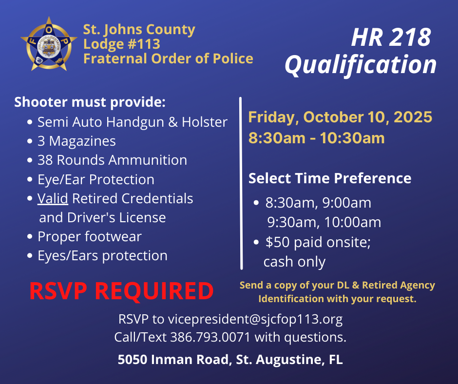 Shooters must provide semi-automatic firearm and holster that securely fastens to a belt, eye/ear protection, 38 rounds of ammunition; proper footwear. Eyes/Ears protection required. No revolvers. Cost $50 CASH ONLY to instructor; paid on site; no refunds. Valid DL and retired LEO ID required.